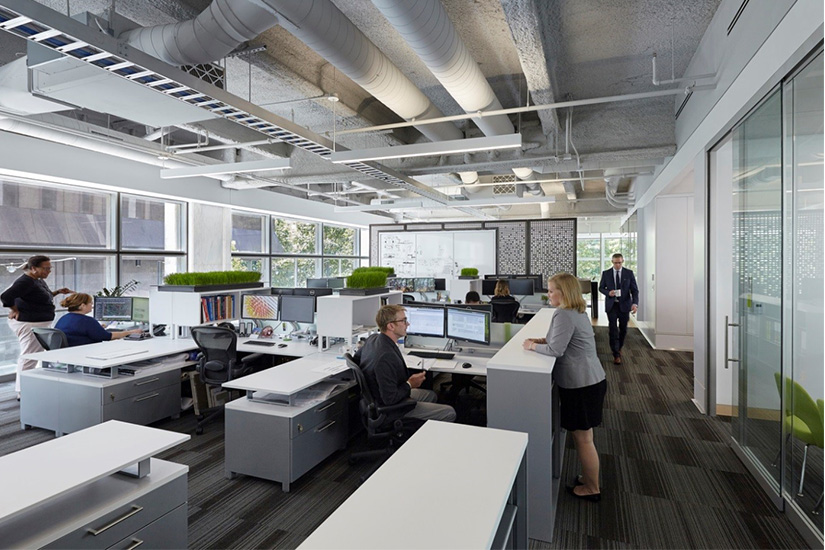 The new RATIO Design building has a narrow footprint, so the firm had to make sure there were enough private meeting spaces. Ninety percent of walls are full height and length windows, allowing people from the streets to have a peek into their office.