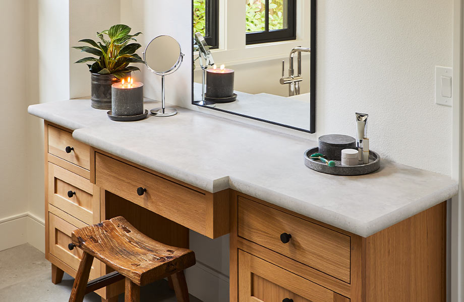 Make the space meaningful. Hang inspiring artwork, display favorite books or create a vision board. Add intentional items that support your goals, like journals, crystals or meditation tools while keeping technology out of sight. Durable, easy-to-clean surfaces from 180fx® Laminate or Formica® Laminate will help keep your wellness room looking serene and organized over time.